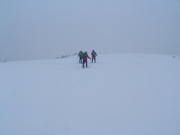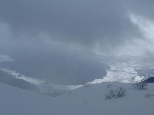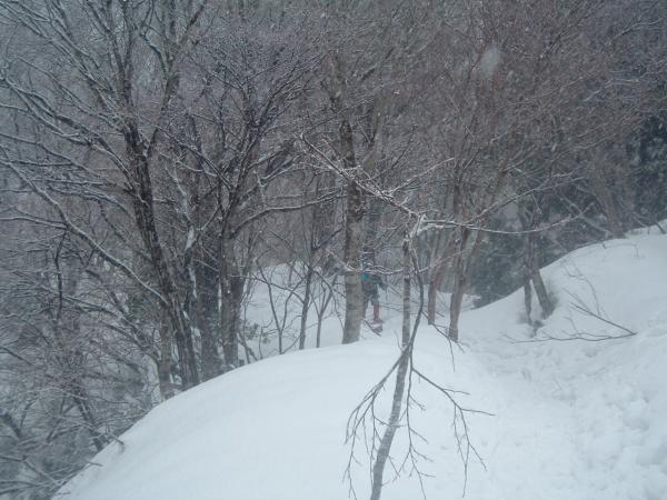 稜線上に出るとふぶいた雪が顔に吹きつけ、寒かったです。