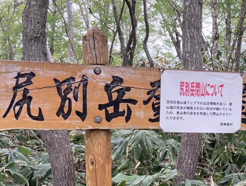 途中、真狩で食事をし13時過ぎに登山口に着いたのですが、まさかの「ヒグマ出没により閉山」の張り紙が…