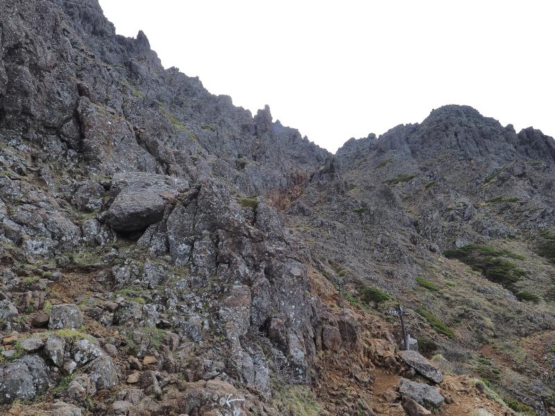 岩場を下りてあとは比較的歩きやすい道。コマクサ群生地はさすがにまだ全然ですね。