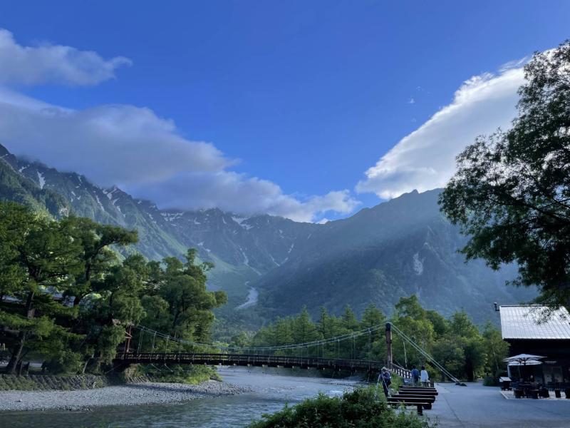 上高地から明神主稜線と前穂高岳を縦走してきました。直前まで天候が怪しかったのですが、幸運なことにちょうど前日に梅雨明けの発表。朝の静かな河童橋をテンション高めで出発しました。