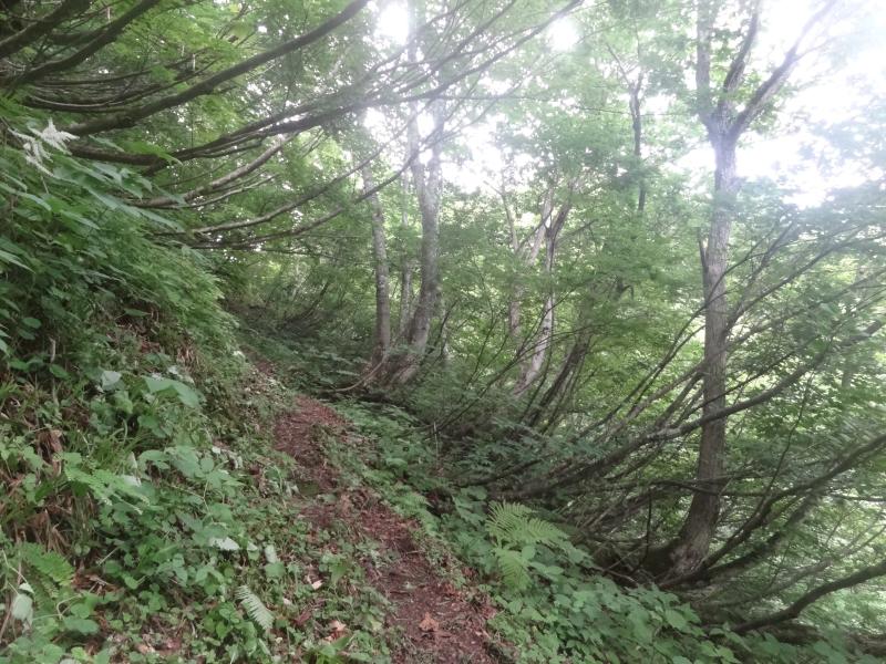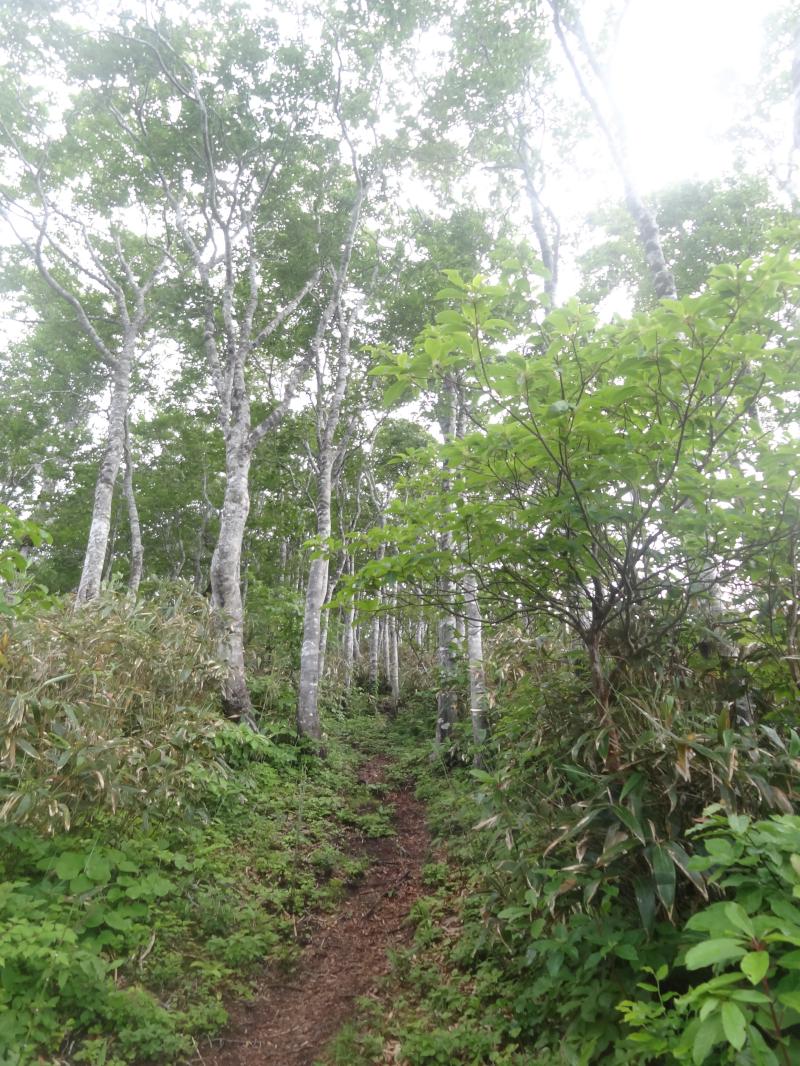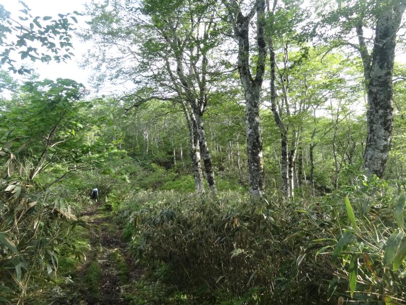 ⑥小白木峰からはなだらかな樹林帯の平原が続きますが、小刻みな登り下りがあります