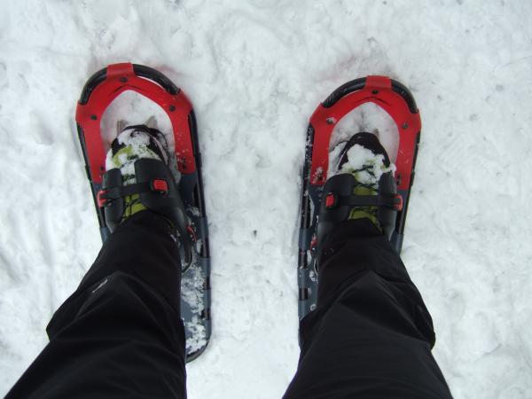 - 駐車場付近は積雪はあまりなかったが、登山口からスノーシューをつけられるくらい雪はしっかり積もってました。ただ、気温が安定していない天候が続いていたせいか、滑りやすかったです。