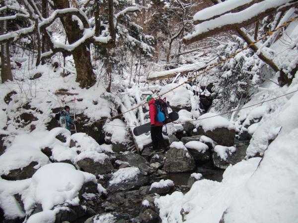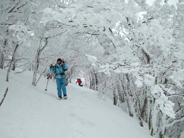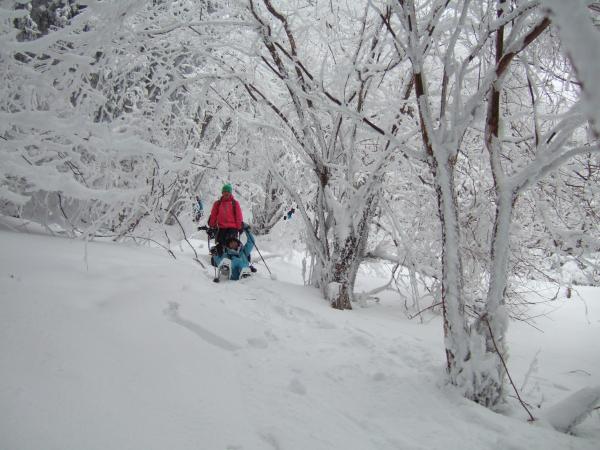 雪山経験があまりない私でも、とっても登りやすい山でした。何度か川を横切らないといけないので、少し慎重になったところもありましたが、雪景色を楽しみながら、比較的ゆっくり登ったコースタイムで、疲れはまったくなかったです。下りはアイゼンの方がよかったので、車の中においてきてしまったのが残念でした。6本アイゼンでも今の積雪なら十分大丈夫だと思います。頂上はスキー場になっていて、そり滑りやスキーを楽しんでいる方がいました。