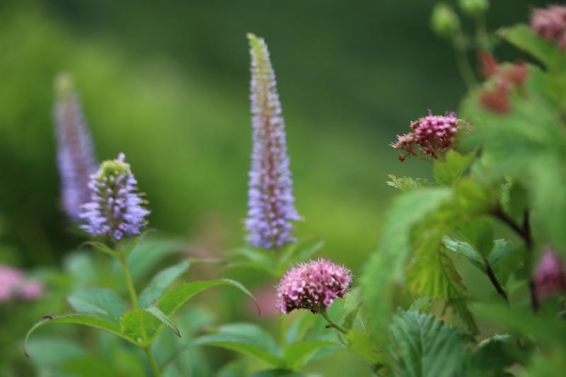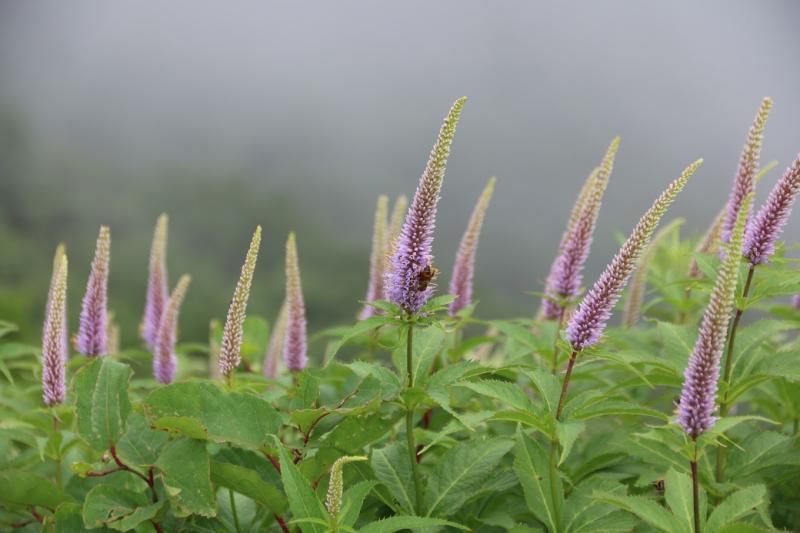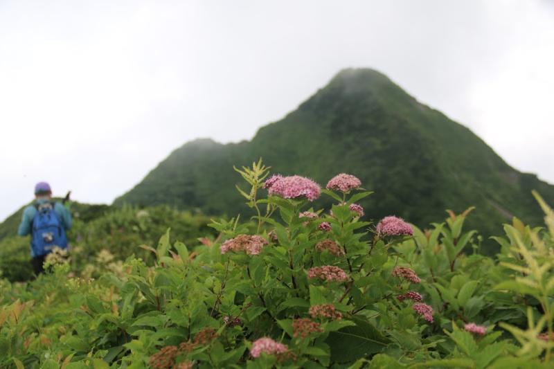 登山口のブナの森、「エゾアジサイ」のお花畑に向えられます。