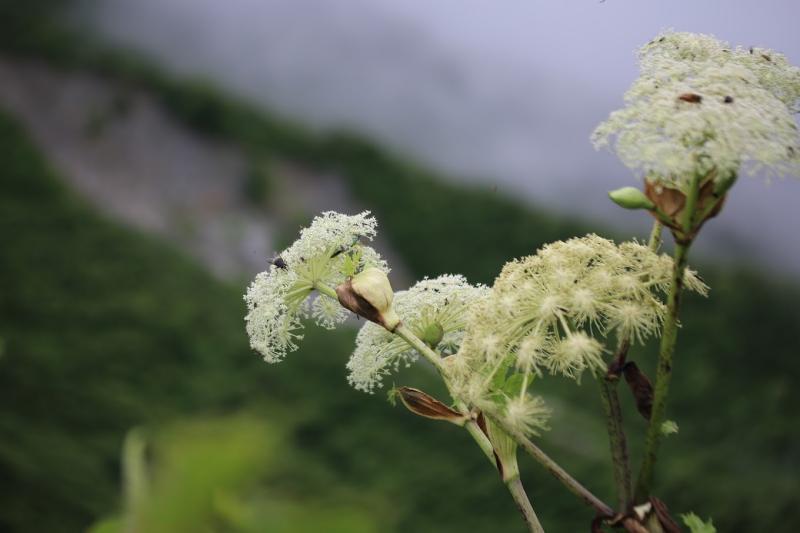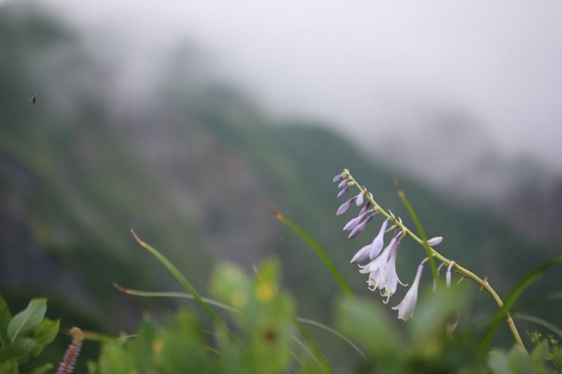 お花畑スタンバイOKでした。一面のギボウシです。北壁とお花。三鈷峰とお花。