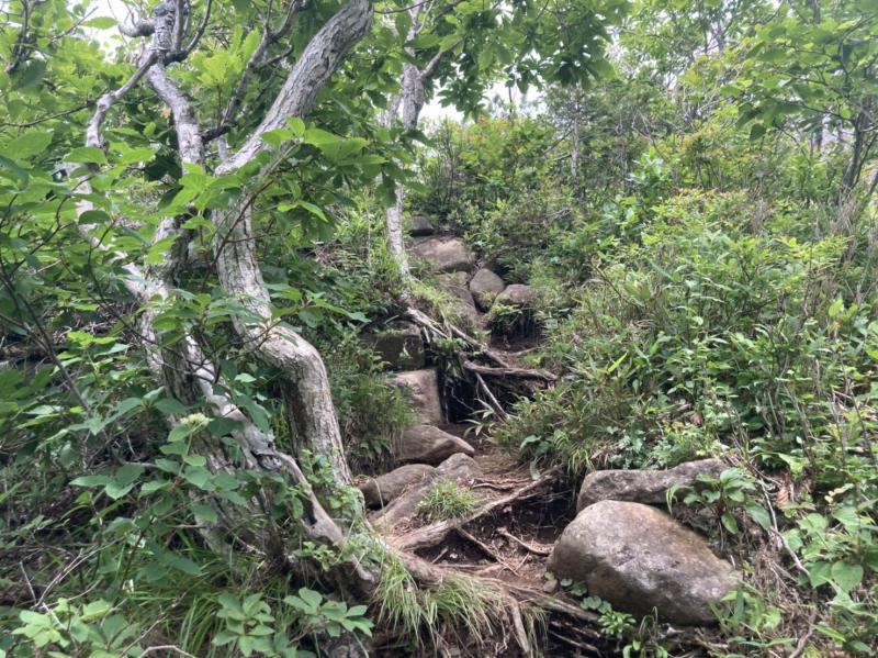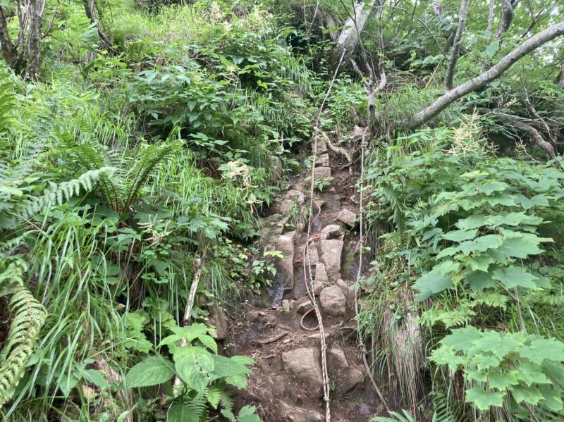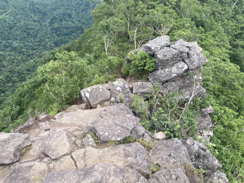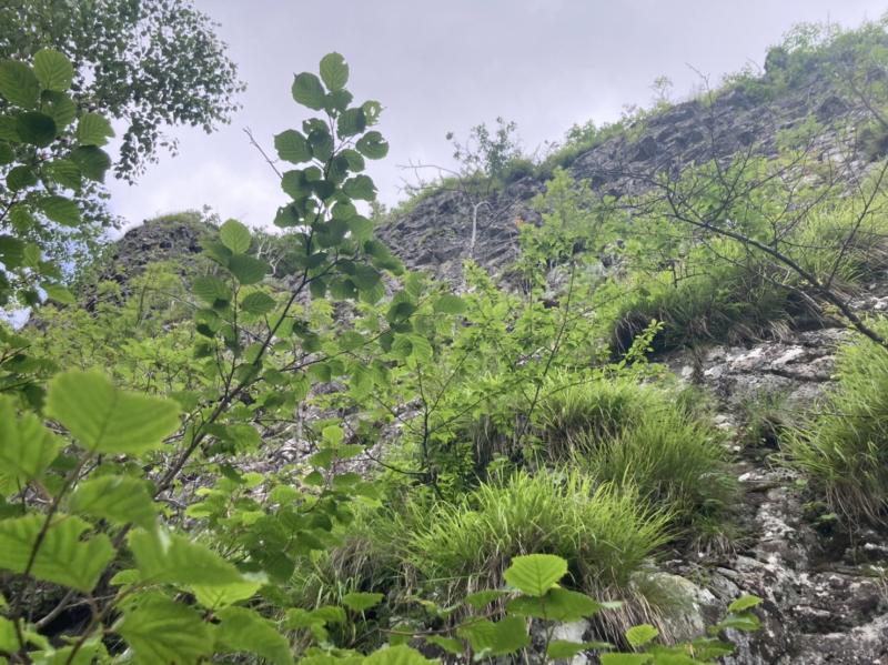 トラバースを終えると最後の急登でピーク付近の岩場に出ます。