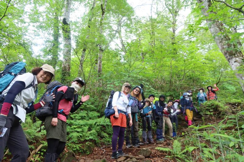 北上するにつれ空は晴れ渡り、関越トンネルを越えたらすっきりとした青空に。皆の表情も次第に期待の色に変わり私も一安心、登山口で小板橋ガイドと合流して元気良く歩き出しました。
