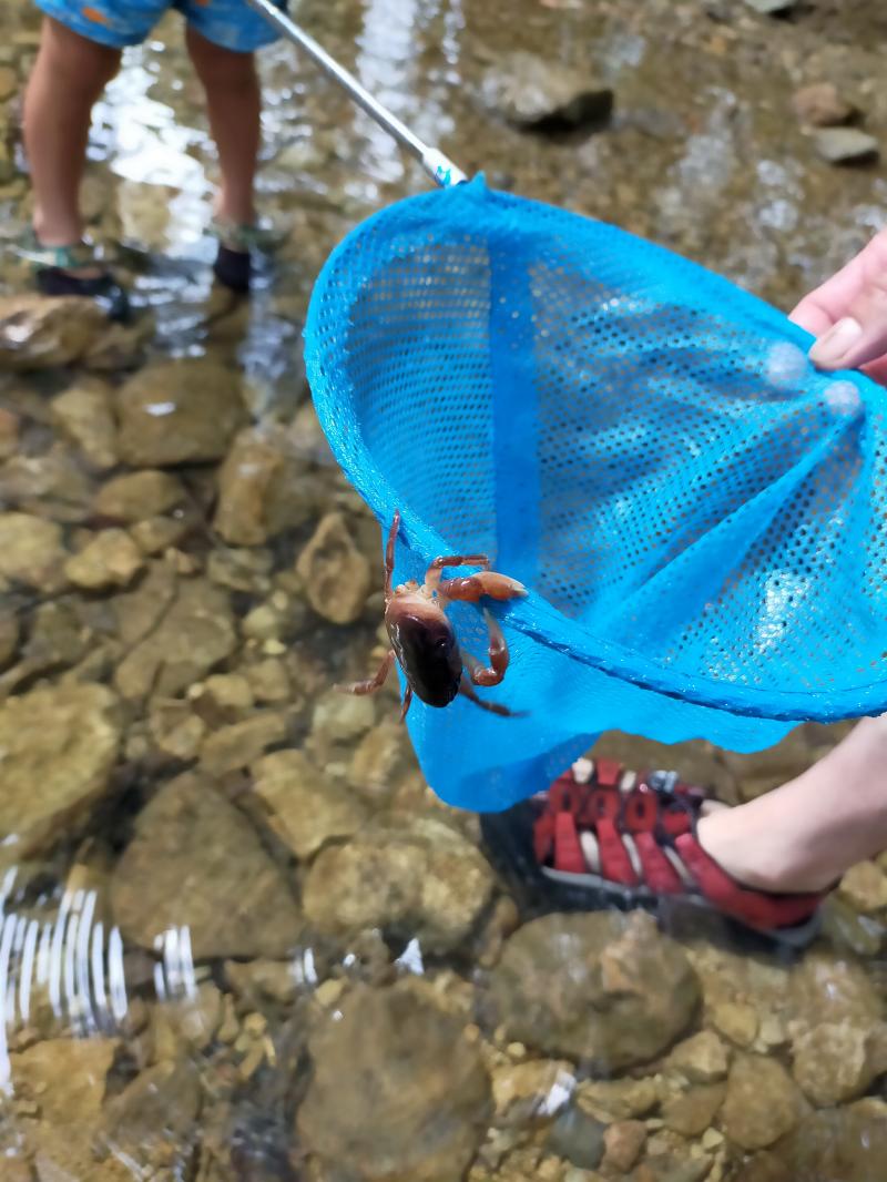 今回は最初からカニによく出会え、お昼すぎには12匹も見つけられました。また、注意看板も出ていますが蛇もいました!2回も出会って息子もやや怖がって水から上がっていました。