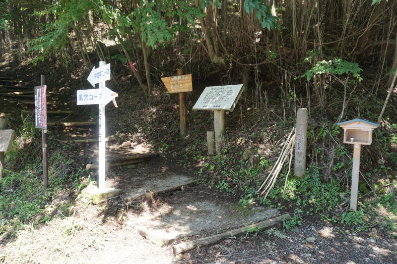 どうしても止められない場合は、風穴コースの入口(がっつり登山道の中)に止めるよう案内看板があり、実際下山した時に1台駐車されていました。