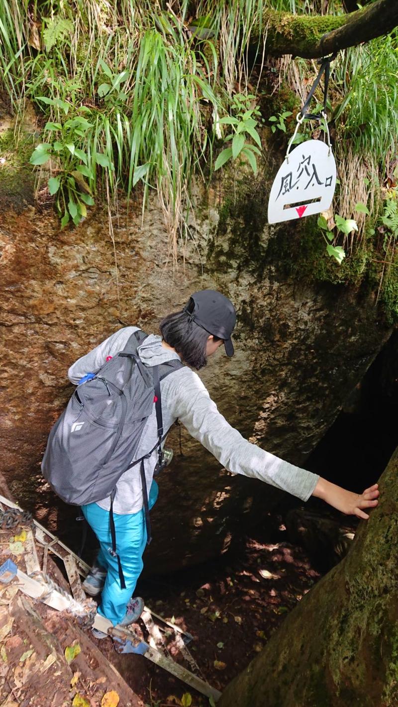 途中、コース名にもなっている「風穴」があるのですが、中はまるで冷凍庫。温度計の気温25℃が一気に15℃に。