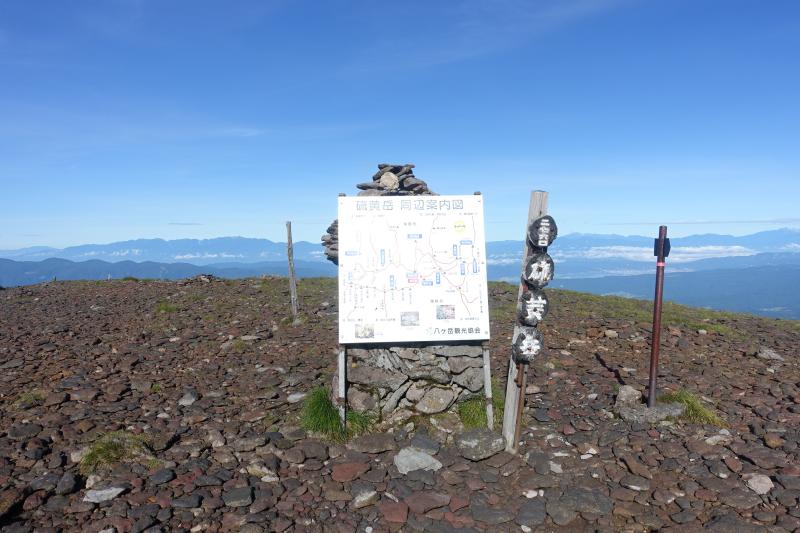 赤岳までの登り返しはこの日の行程で一番堪えました。日差しが強くここら辺で軽い熱中症っぽい症状が出たので、山頂で長めの休憩を取りました。水分や塩分をもっとこまめに取るべきでした。