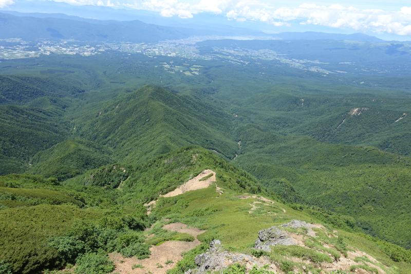文三郎尾根から中岳への下りはガレているので、転ばないように慎重に歩きます。