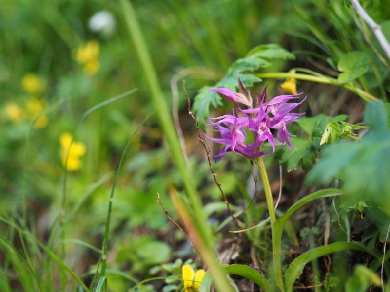 日差しをたっぷり受けながら、そこここに咲く花々を写真に収め、持ってきた小冊子で妻と名前を確認し、草滑りを登っていきます。急登ですが花々や景色を楽しみながら登ること大事です。