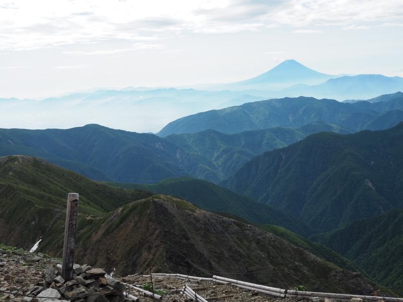 小太郎尾根分岐に飛び出すと甲斐駒ヶ岳と仙丈ケ岳、そして北岳。沢山の山々が見渡せます。気持ちいい!