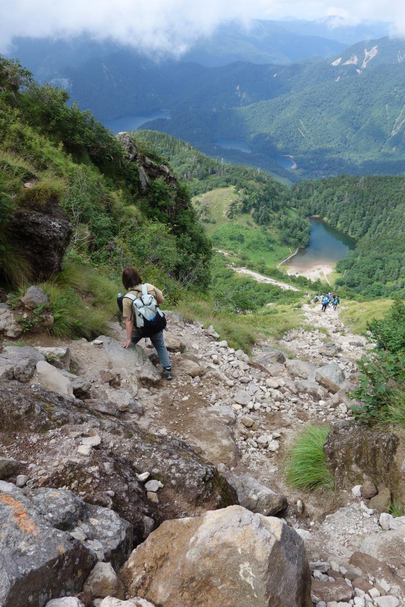 〇山頂から弥陀ヶ池分岐までは、急な岩場の下り坂で落石注意ポイントです。両手を使いながら下る場面も出てきます。慎重に下りました。