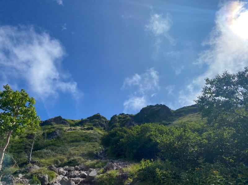 この日はくもり予報でしたので、あまり天候は期待していませんでしたが、森林限界を超えると青空が広がっていました。