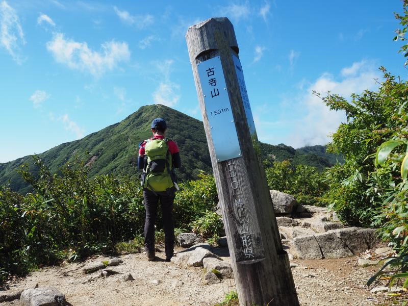 - 古寺案内センター<85分>ハナヌキ峰分岐<60分>古寺山<35分>小朝日岳<100分>山頂<120分>古寺山<60分>ハナヌキ峰分岐<70分>古寺案内センター