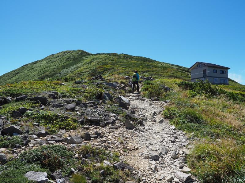 大朝日小屋(無人小屋です)で休憩をとり、昨日に続きまたもや足の攣りりと闘う長い下山。帰りはもちろん小朝日岳は避けてトラバース道へ。少し歩きにくく滑りやすい箇所が多いので気を付けて。