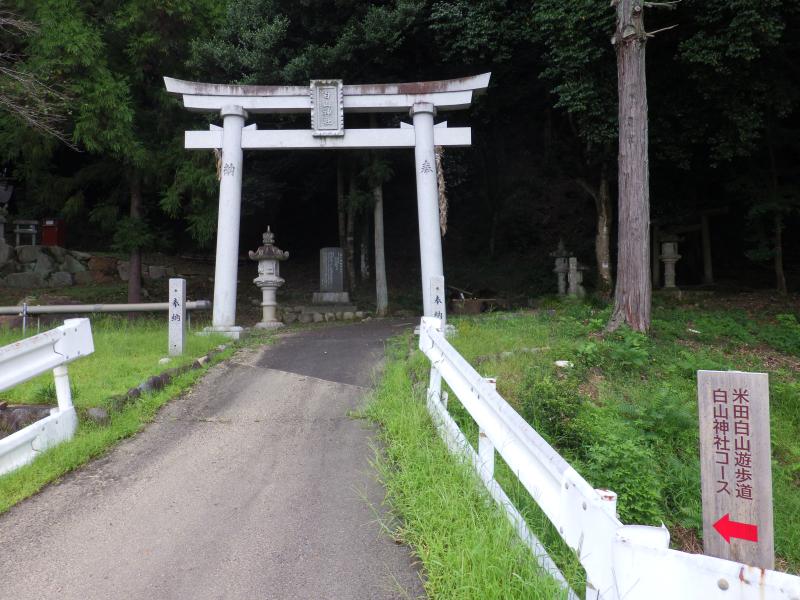 - 白山神社一の鳥居(6分)白山神社二の鳥居(5分)白山神社(12分)白山槍(2分)米田白山(6分)白山展望台(2分)箱岩コース分岐(14分)箱岩(11分)白山神社一の鳥居