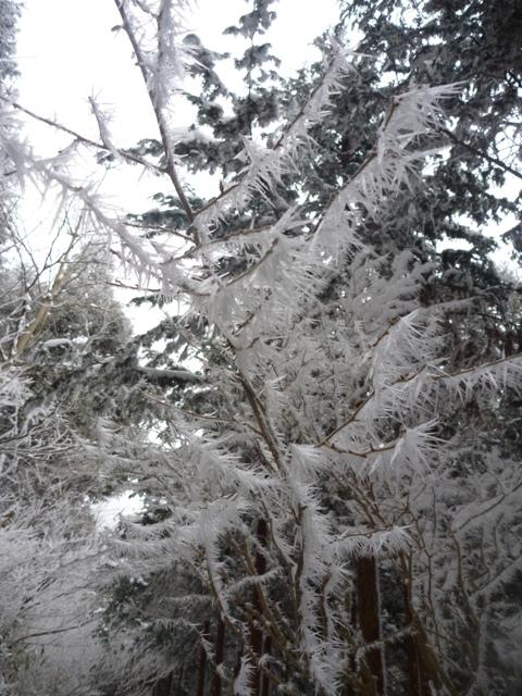 今年の霧氷は少々重たい感じでした。雪はサラサラでしたが、
