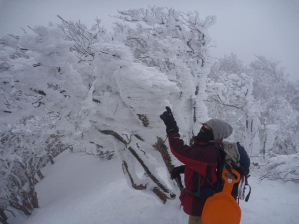 小峠~大峠間ではサボテンのようなトゲトゲの変わった樹氷が