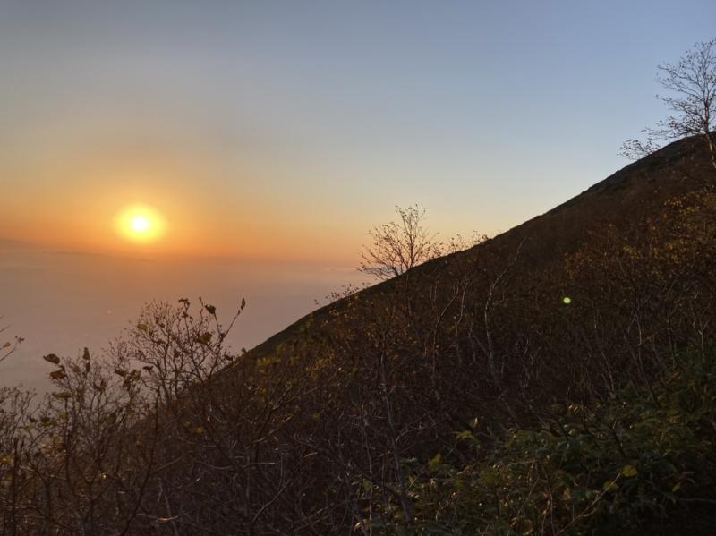 かなり順調に進んで、御鉢に出た辺りでサンセット。