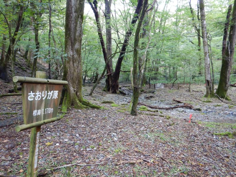 - さおりが原からカヤハゲ西尾根にさしかかる辺りで、尾根の北側を回り込んでフスベヨリ谷に合流する道が続いています。いわゆる破線ルートで、倒木や斜面崩落等で道が荒れていますが、かろうじて通じています。