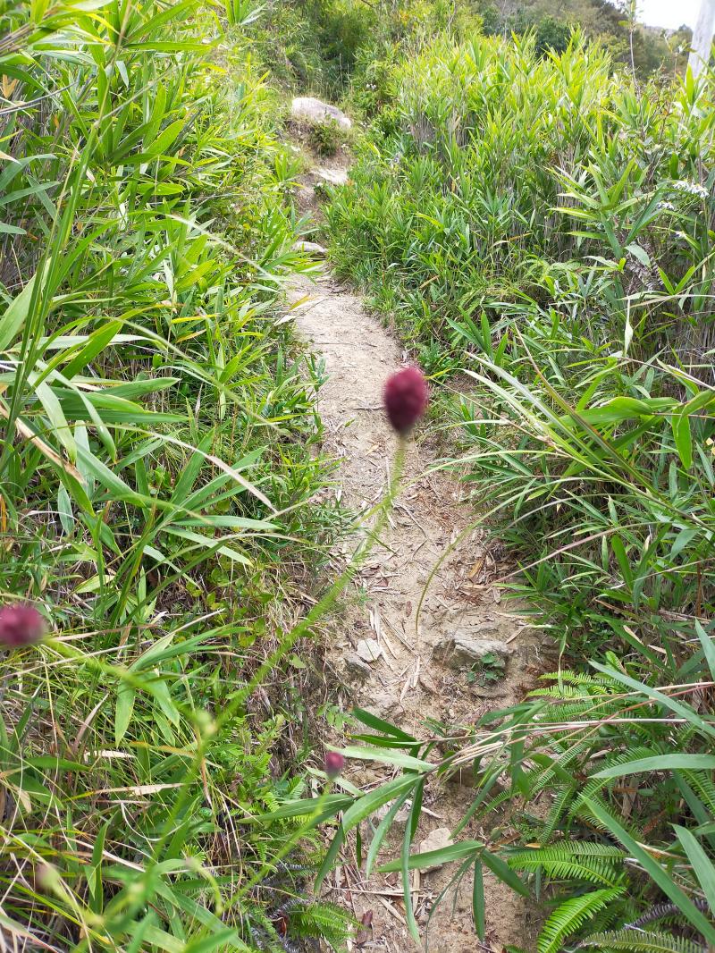 このコースは2年以上ぶり。好日山荘You Tubeにもアップされていました。山頂まで直登できるのですが、今回は途中から巻き道に入って草の中を歩きます。いつも山頂で休憩していると眼下に歩いている方がいて、面白そうなコースだなと思っていたので◎