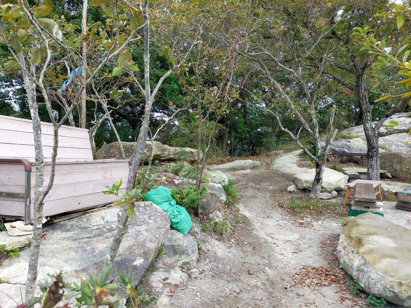 展望はなくなるものの、細い一本道をずんずん進む歩きやすいコースでした。看板が見えたら、あ~ここか!と思えます。