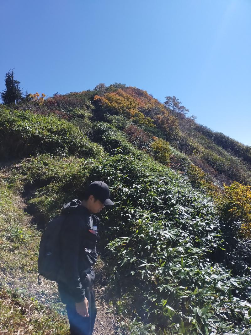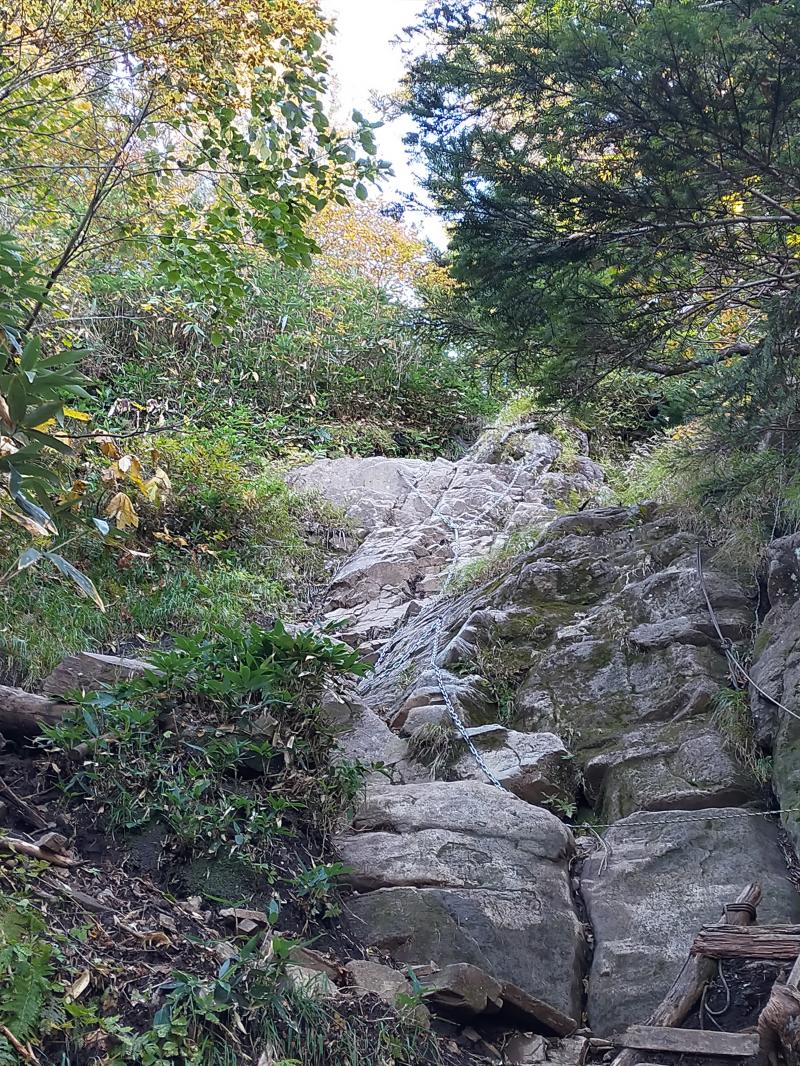 むしろ下り、山頂直下から段差の大きい急坂がしんどかったです。