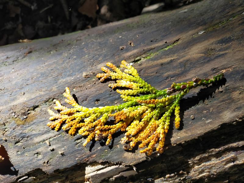 アスナロの原生林が続く登山道は香りも良く、落葉した葉は目を楽しませてくれました。