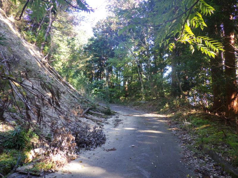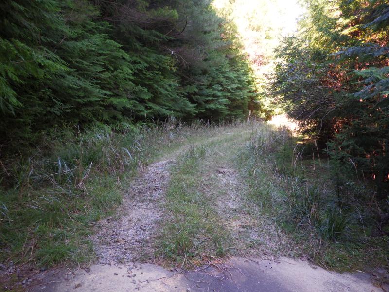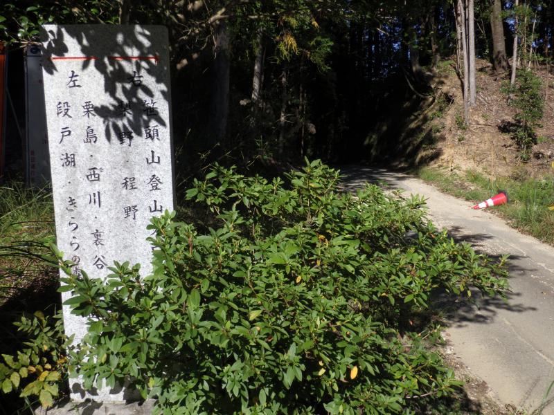 ①笹頭山林道は舗装で未舗装に変わる箇所が笹頭山登山口、登山口に1台程度は駐車可
