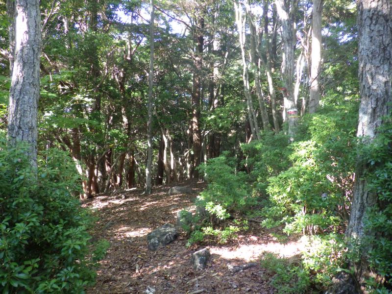 笹頭山に登るスタート地点はこの田峯観音というパターンが多いですが、ここからでは大半が舗装路を歩くだけになります。今日は三山目ということで、本来の登山口まで車でアプローチし、すばやくピストンしました。中腹まで車で上がってきたので、登山道はいきなりひたすら登っていくのみです、。マーキングははっきりしているが、杉林の暗い道で特徴はありません。山頂からは少しだけ切り開きがあり、大鈴山と平山明神山のバックに南アルプスが遠くに見えます。今回は往路下山ですが、田峯観音からの方は南尾根でも下れる(登れる)ようです。
