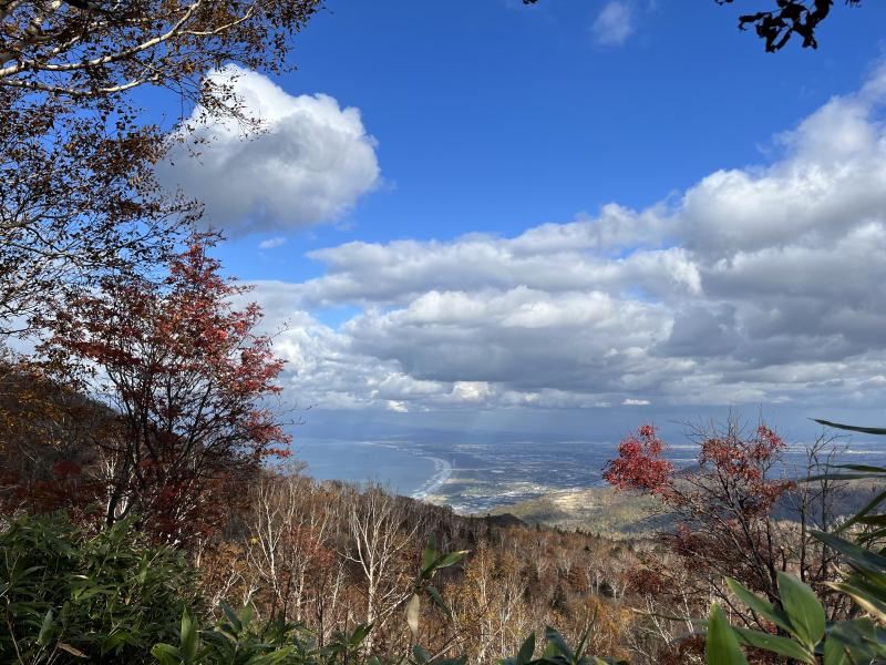 展望の良い山頂では、石狩湾を眺めながら温かいコーヒーと甘いおやつを頂き、のんびり。