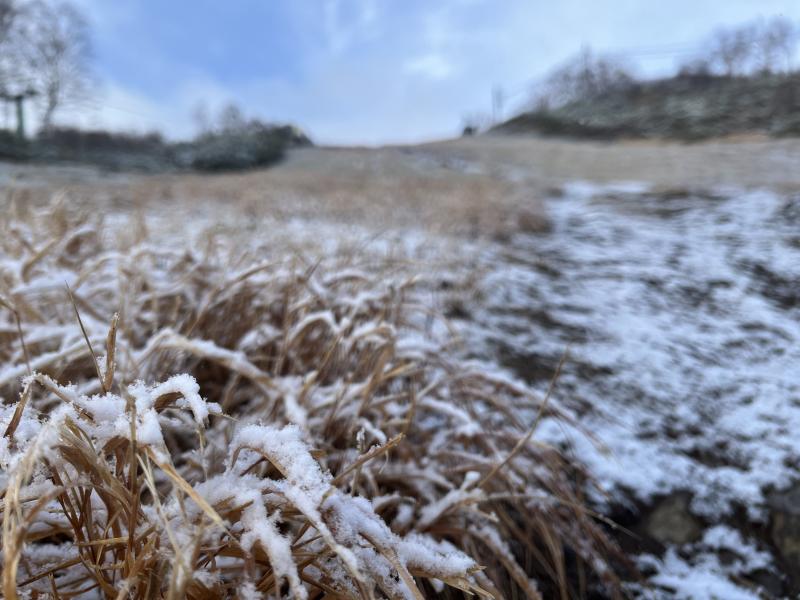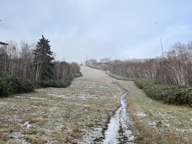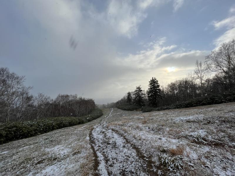 急な登りに差し掛かり、勢いよく登っていると白いものがチラついてきました。