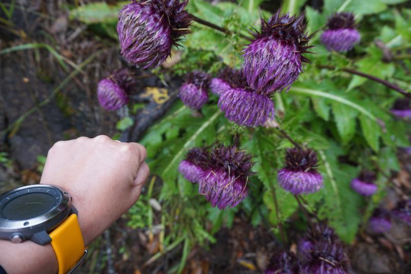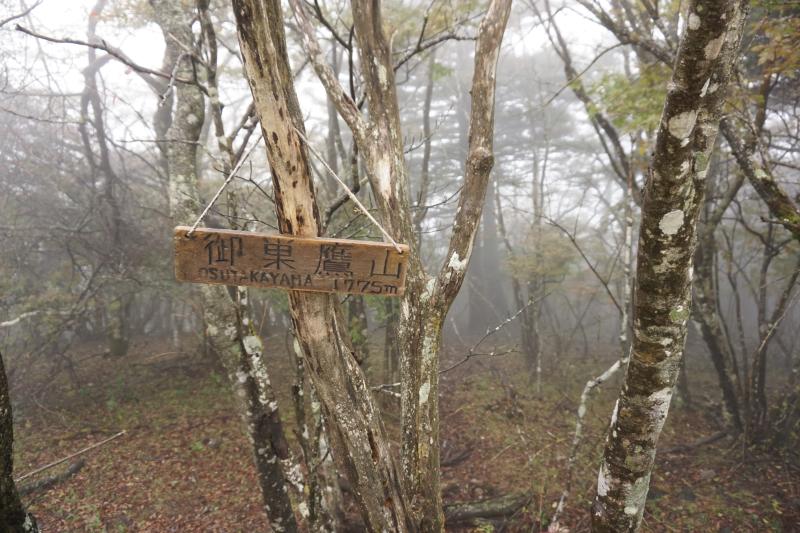 前半は雨こそ降らなかったものの、樹林帯も多いこともあり、薄暗く、濃霧がかかっている状態です。