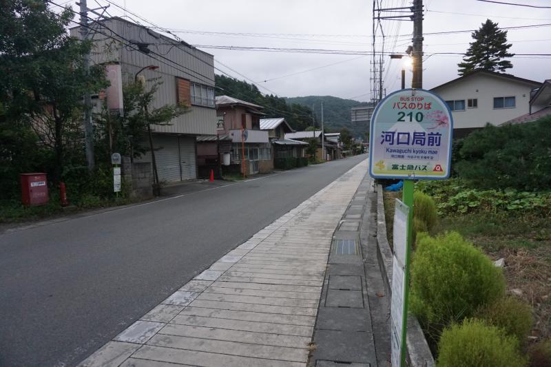 河口局前バス停から河口湖駅までバスで10分ですが、本数がかなり少ないので時間には注意しましょう。