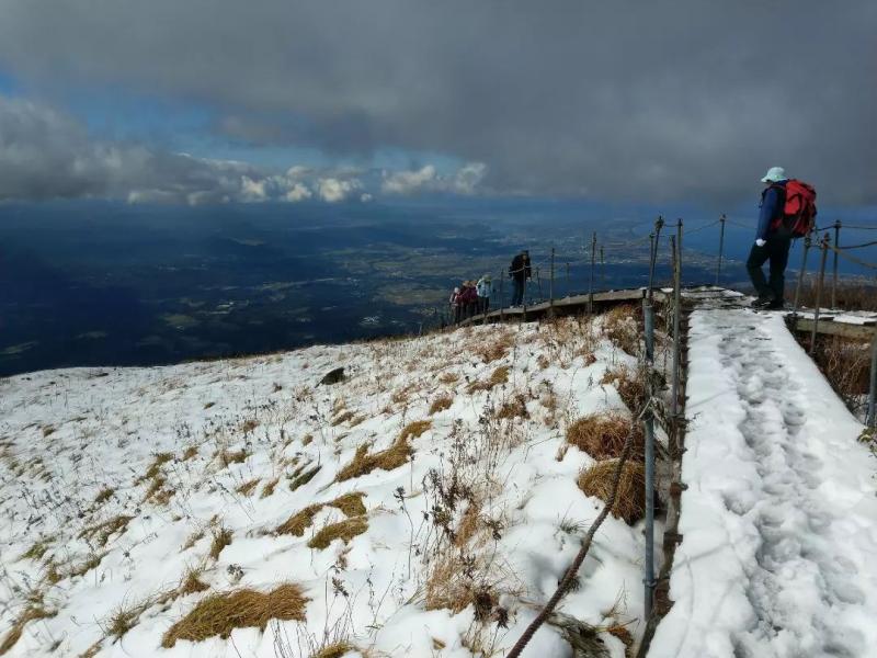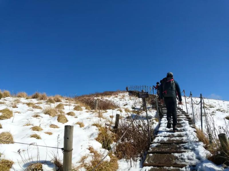 木道に雪が乗っているので 非常に滑りやすく 溶けている雪もあり、木道が危険でした