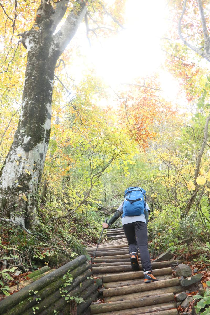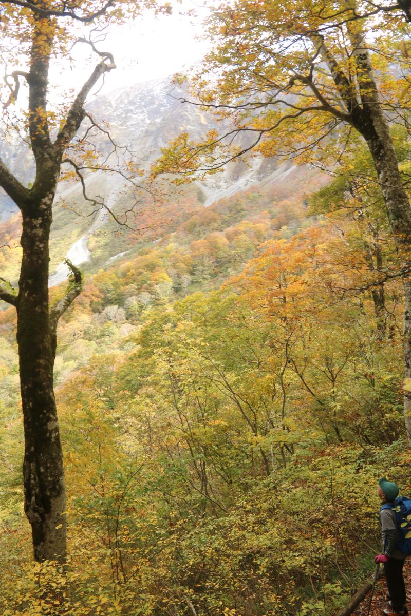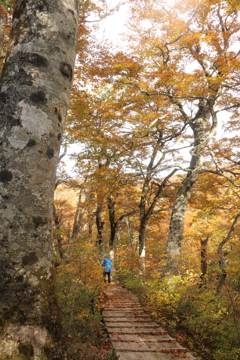 ブナの黄葉はまだ始まったばかりです。朝はまだガスっていて