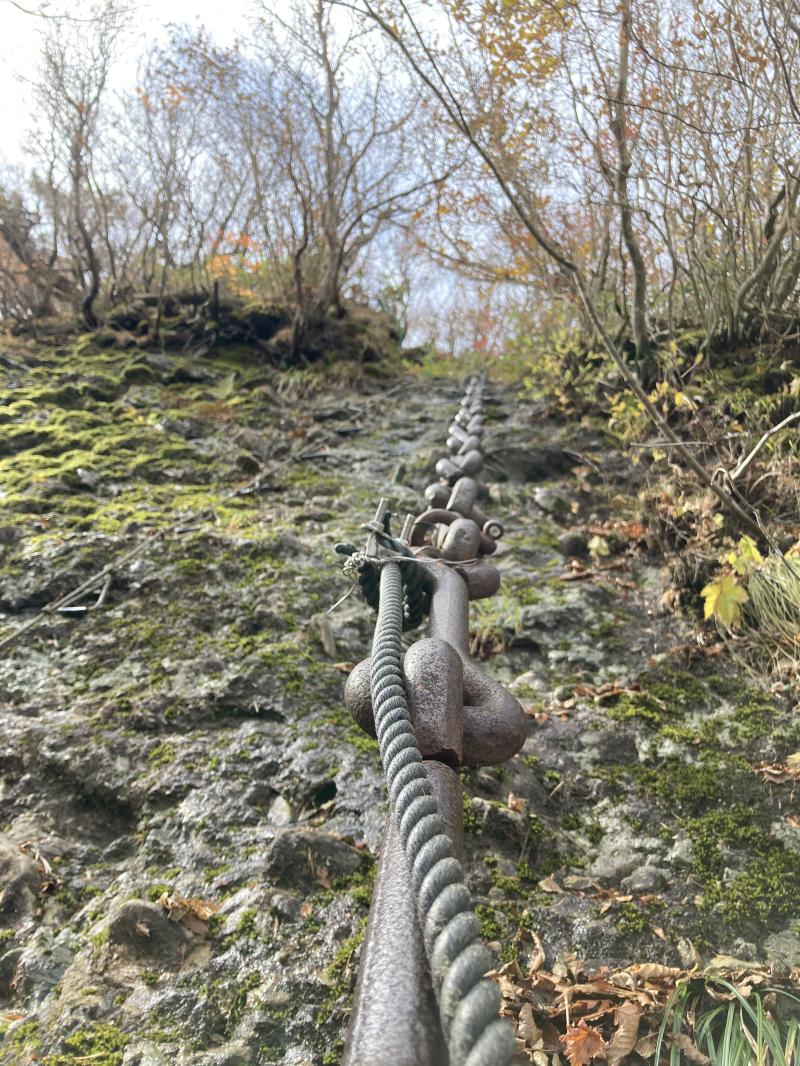 手がかりは鎖になりますが、持っていった手袋が思いのほかグリップしてくれず、これもまた怖さを後押ししました。
