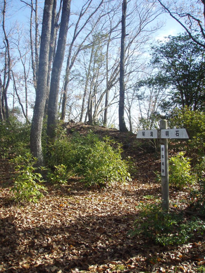 - 琴滝・駐車場~15分~明石・登山口~50分~須知城本丸・城山(384m)~45分~鉄塔84下~20分~大滝池~25分~小瀧池~20分~琴滝~5分~琴滝・駐車場