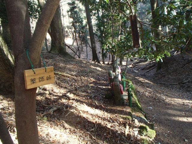 ・薬師峠にはお地蔵様が祀られており、ここで曲がって下りますが、メインのコースなのに、登ってきたコースより荒れ気味。新しいコースの方が短いうえに綺麗なので歩かれなくなってしまったのでしょうか?15分程で志明院に着きます。