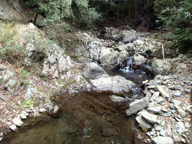 ・やや荒れ気味の急な下りを進んでいく。道標はあるものの、あまり雰囲気は好きではないコースでした。淡々と下って学校林小屋へ到着。