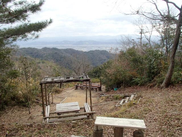 ・尾根との出合から20分ほどで山頂に到着。斜面になっている場所にテーブルやベンチが有り、展望も上々!少し休憩してコースの再確認。どのコースで下るか、時間を気にしながらの登山なのでよく考える。