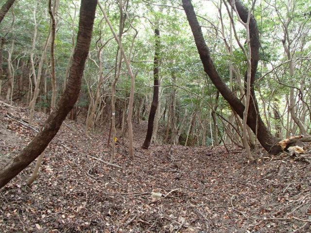 ・結局奥辺峠まで歩いて周回するコースに決めて歩行開始。緩やかなコースを軽快に歩いていくとすぐに鳴滝峠に着きます。ここで地図にはない下りコースを発見。奥辺峠からの車道歩きを考えるとこちらのショートカットコースの方が魅力的だったので、急遽コース変更。