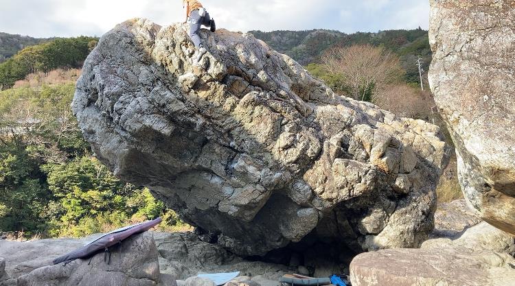 ちなみに下降は隣の岩に飛び移るしかない。これも結構怖い。