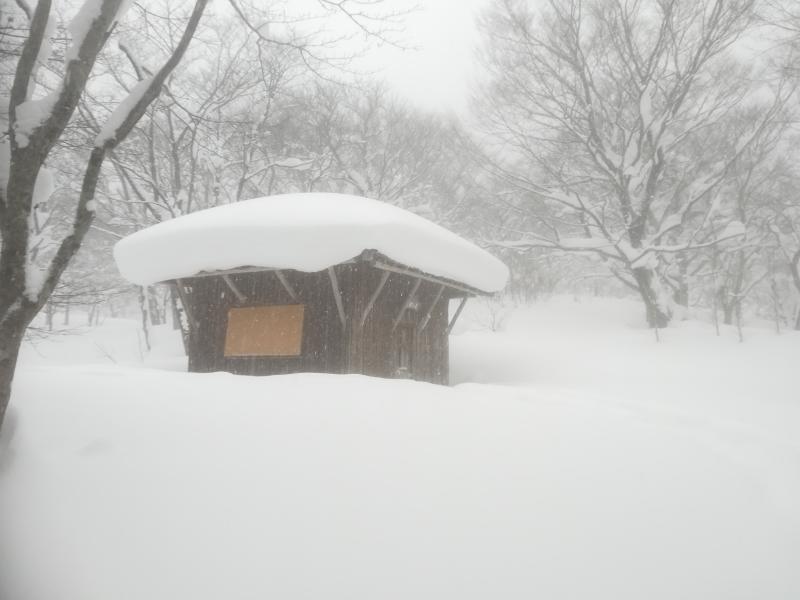 避難小屋まで戻り昼食を食べて下山。雪山では避難小屋があると本当に助かります。