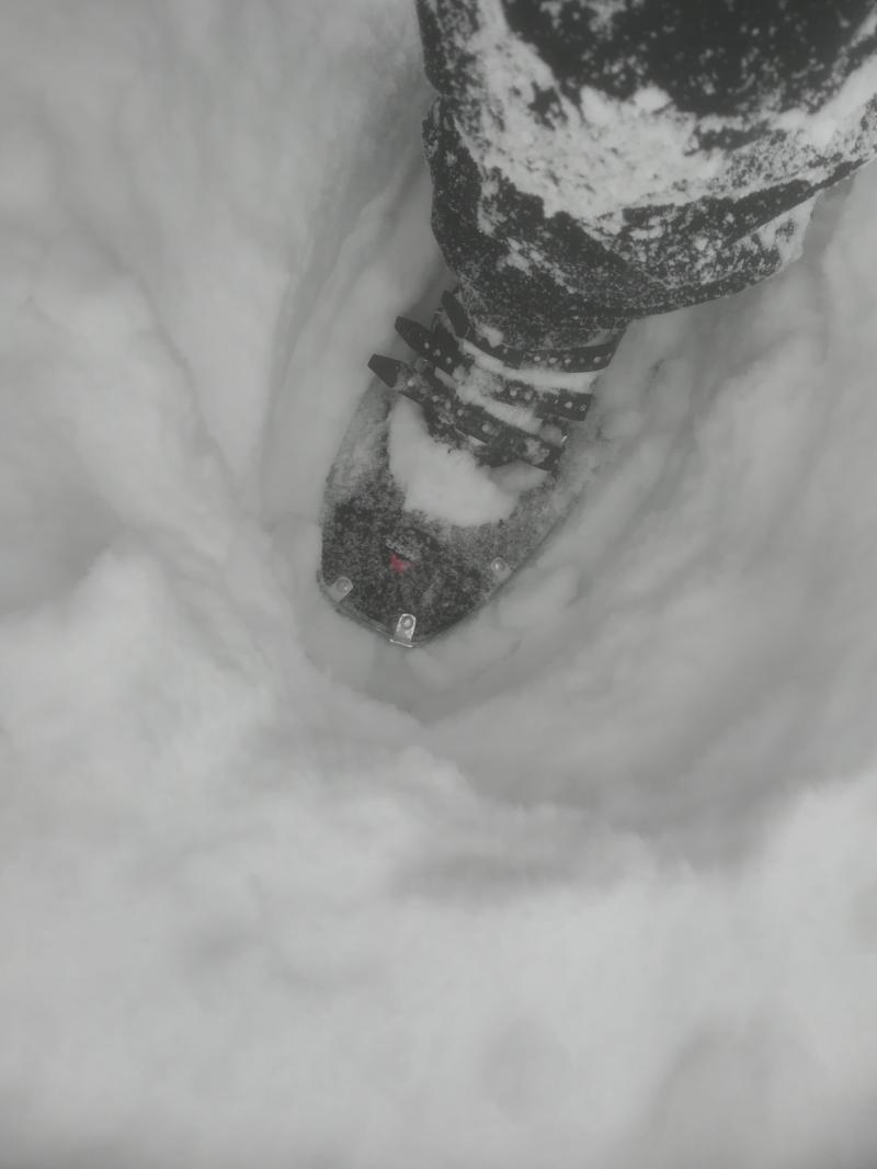 急斜面の登りはつらかったですが、スノーシューを履いての下りはぼっけー楽しい。