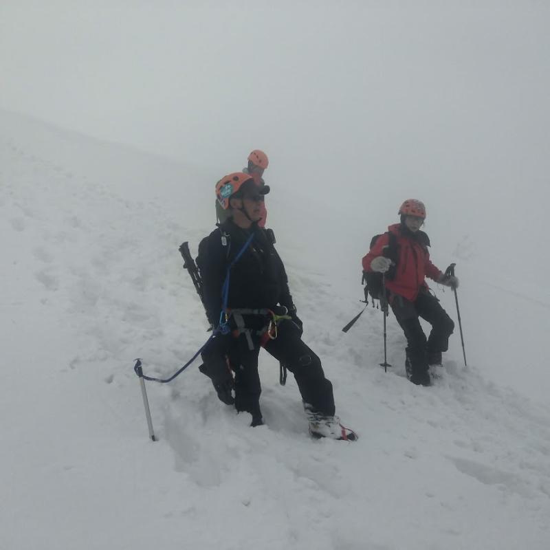 雪が締まっておりました。ただ、凍っている場合などは最初からザイル出すこともあります。