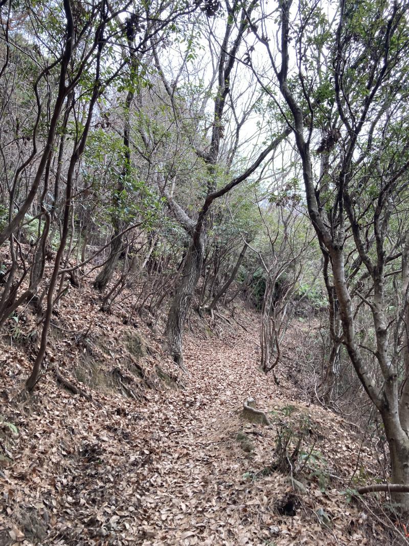 通常のトレイル。落ち葉が積もっていて下山時は滑りやすい。